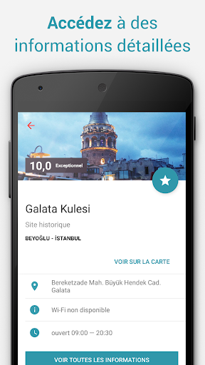 Un compagnon de voyage fiable et simple d’utilisation. Profitez de cartes détaillées accessibles hors connexion, de contenus touristiques très complets, d’une liste des lieux les plus visités et de conseils avisés. Organisez le voyage idéal !