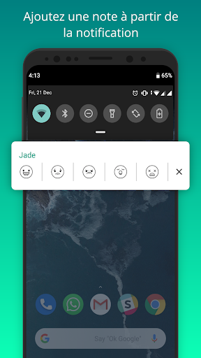 Jade est une magnifique application de journal intime qui vous permet de garder une trace de vos souvenirs, de vos émotions et de vos pensées facilement, sans avoir à écrire quelque chose. Ajoutez vos humeurs au fil de la journée en un clic sans même avoir à ouvrir l’application.