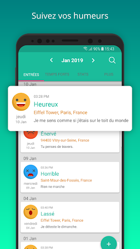 ★ Ajouter un lieu, vos pensées ou des remarques à chaque humeur