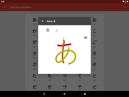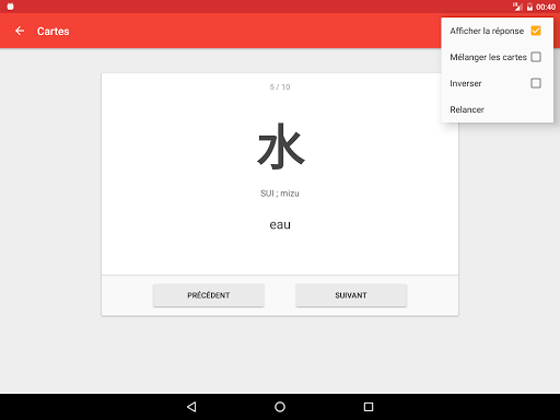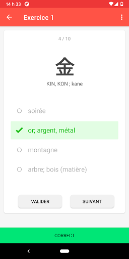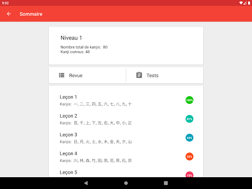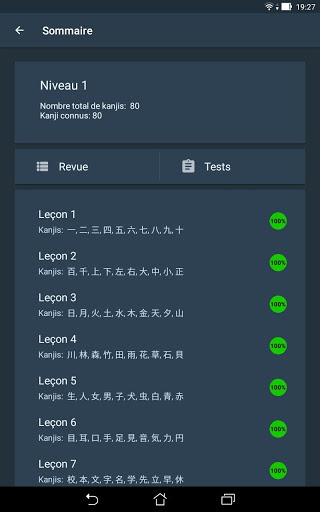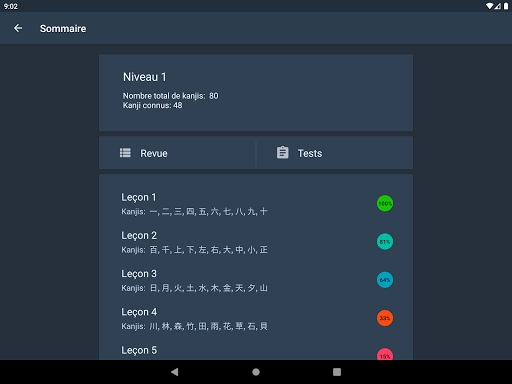 - Tests avec des résultats instantanés qui permettent d'évaluer votre connaissance des caractères japonais