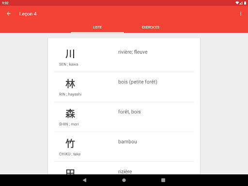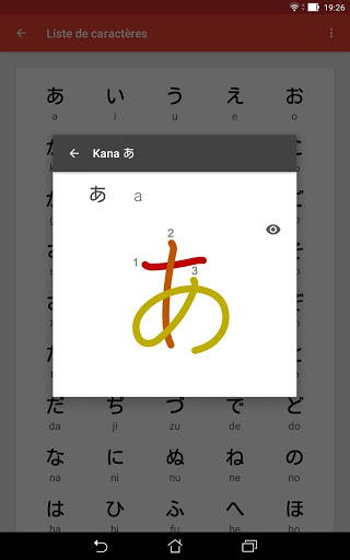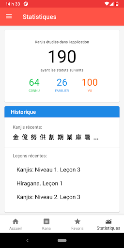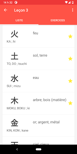 Cette application est conçue pour apprendre des caractères japonais et, tout d'abord, les kanjis, caractères chinois qui sont utilisés dans le système d'écriture du japonais moderne. Les exercices interactifs vous aideront à mémoriser les caractères, leurs significations et leurs lectures de base. L’application comprend aussi la section Kana qui permet d'étudier et de pratiquer les syllabaires japonais, Hiragana et Katakana, ce qui peut être très utile pour les débutants.