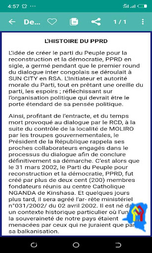 L’idée de créer le parti du Peuple pour la reconstruction et la démocratie, PPRD en sigle, a germé pendant que le premier round du dialogue inter congolais se déroulait à SUN CITY en RSA. L’Initiateur et autorité morale du Parti, tout en prêtant une oreille du parti, les espoirs ; réfléchissant sur l’organisation politique qui devrait être le porte étendard de sa pensée politique.