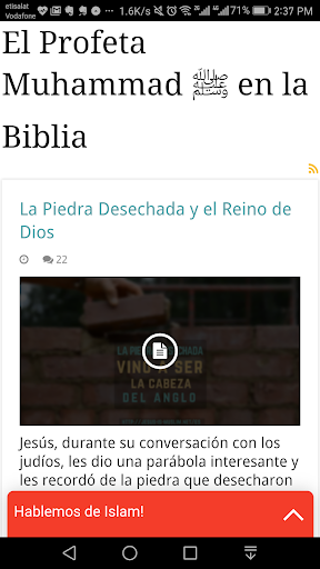 En esta aplicación, voy a hablar sobre el Islam, ¿qué es el Islam? ¿Cómo es el Islam la religión verdadera? ¿Qué hacen los Musulmanes?, luego voy a la sección siguiente acerca del Profeta Muhammad (ﷺ), ¿Quién es él? Cuales son sus enseñanzas y las profecías bíblicas hablando sobre él. Después, hablamos sobre Jesús (Paz sobre él), la creencia Musulmana de él y si dijo que es Dios o no y luego discutiremos el principio de salvación desde el punto de vista del Cristianismo. Después voy a discutir el Corán, ¿Quién lo escribió?, los milagros científicos del Corán y su procedimiento de preservación. Después hablaremos de la Biblia, la creencia Musulmana en la Biblia, y si es la palabra confiable y pura de Dios o no. Finalmente voy a discutir las preguntas principales de los no Musulmanes sobre el Islam.