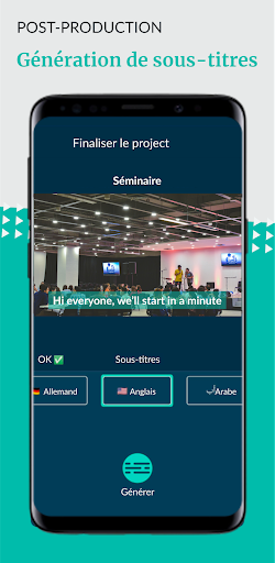 - Des fonctionnalités de personnalisation et de post-production avec la possibilité de générer automatiquement des sous-titres dans plusieurs langues, de mettre de la musique, changer de style graphique et d’importer vos propres logos d’entreprise.