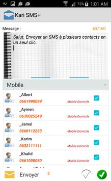Kari SMS vous permet d'envoyer un seul SMS à plusieurs contacts en un seul CLIC. Utiliser cette application pour faire SMS Mailing !