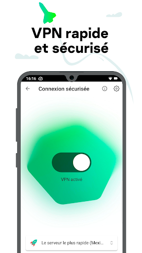 • Vous permet de naviguer en toute sécurité sur un réseau public, grâce au VPN.