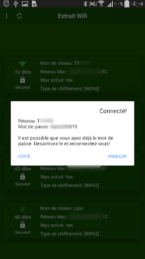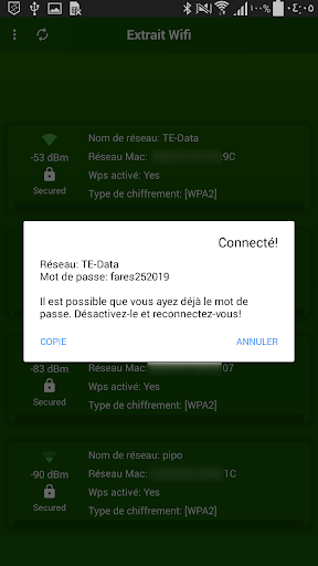 * Les téléphones sans racine, peuvent se connecter aux réseaux avec cette application, mais ils ne peuvent pas afficher le WEP-WPA-WPA2