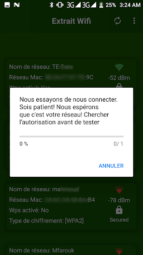 Lorsque vous ouvrez l'application, vous verrez tous les réseaux Wi-Fi disponibles dans votre pays. Tout ce que vous avez à faire est de cliquer sur le réseau Wi-Fi auquel vous souhaitez vous connecter, sélectionnez le code PIN et essayez de vous connecter au réseau.