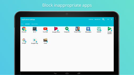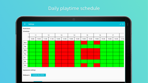 interface allows you to flexibly set up the hours, days and time that will be available for your child to use the tablet or smartphone. Moreover, children will be able to access only those applications and games that you consider to be useful and safe.