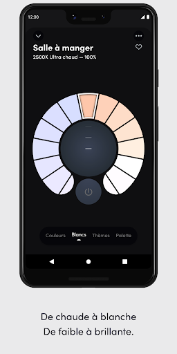 - Les basiques : marche/arrêt, intensité lumineuse, changement de couleurs, changement de tonalité des blancs.