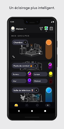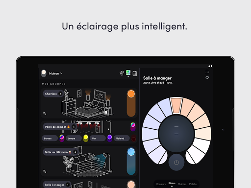 - Groupes : contrôlez facilement toutes les lumières d'un groupe, notamment allumer/eteindre ainsi que l'intensité lumimeuse, grâce à un seul boutton depuis le tableau de bord.