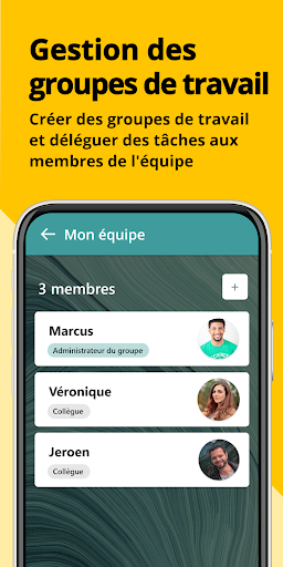 Lyria rend extrêmement facile la collaboration sur des tâches en équipe ! Vous pouvez facilement ajouter des membres du personnel et distribuer des tâches à votre équipe. Mais ce n'est pas tout - bien sûr, vous pouvez également partager des fichiers et discuter ensemble du contenu des tâches et de la progression.
