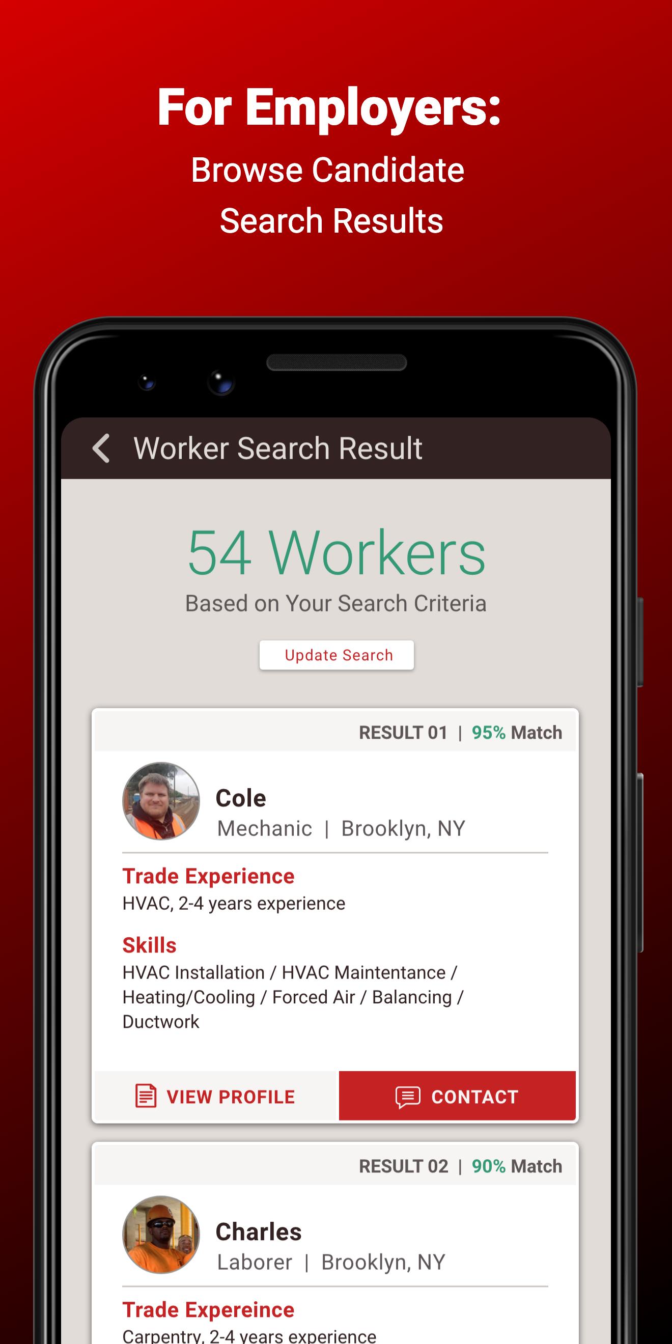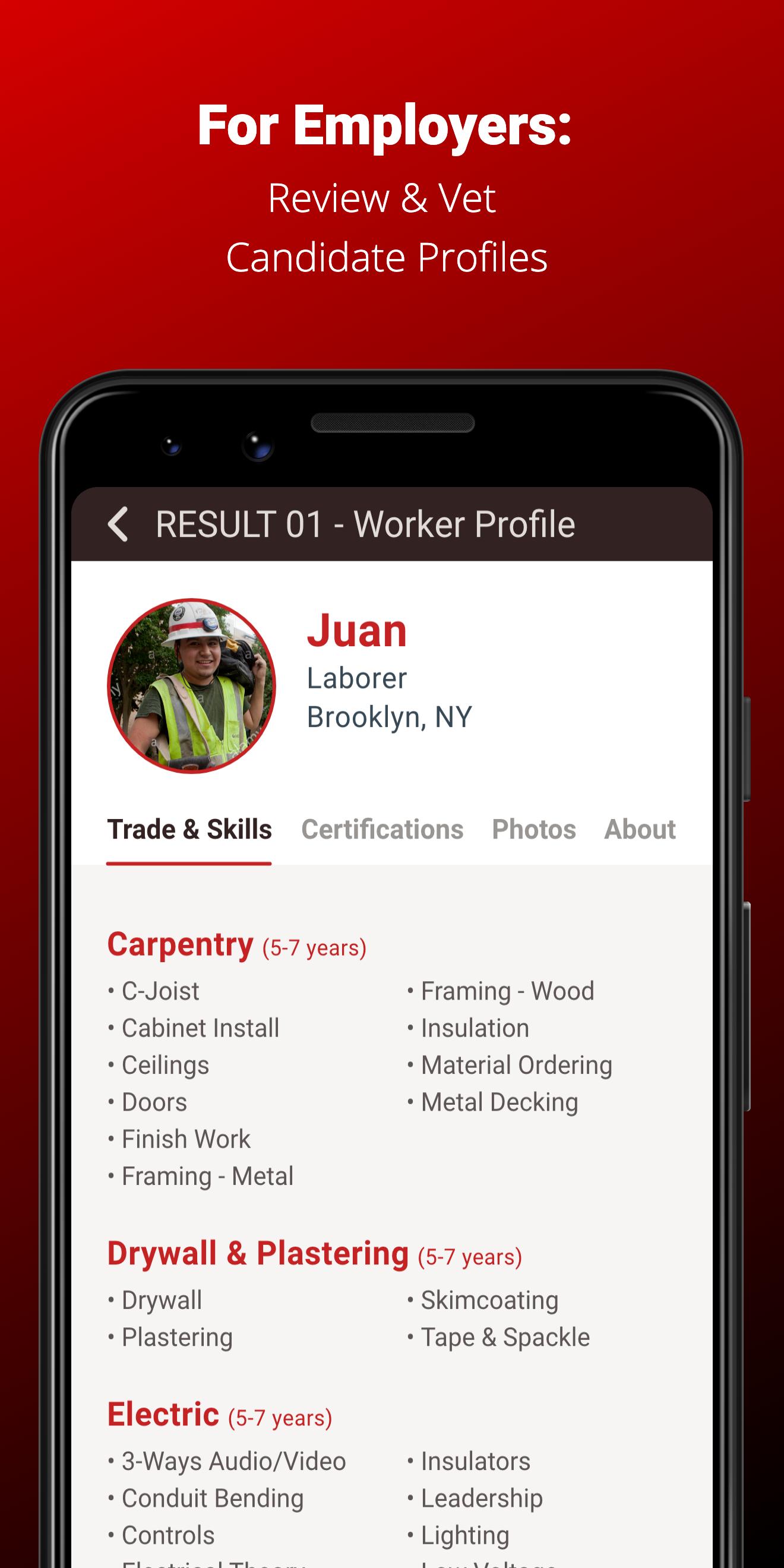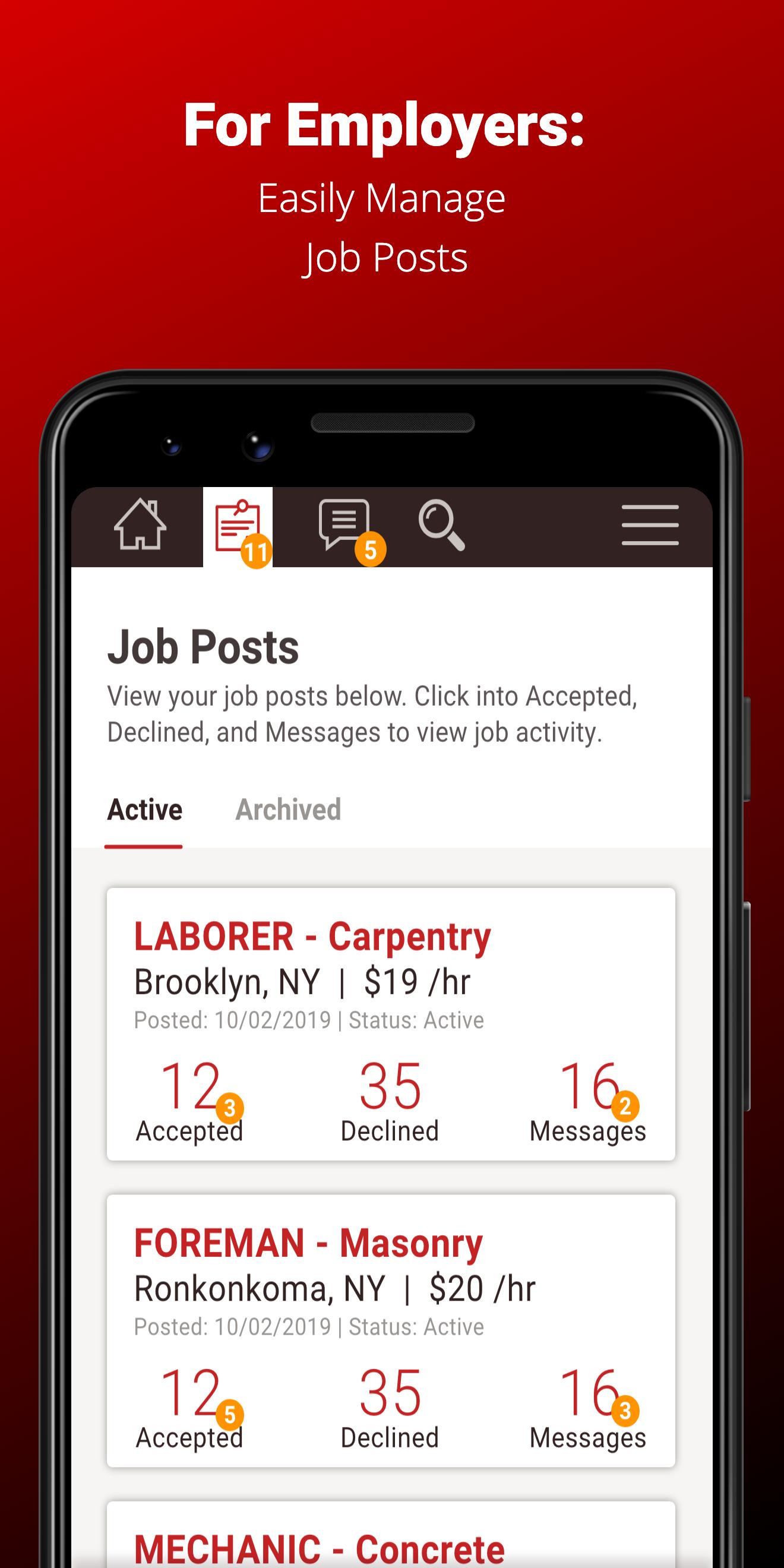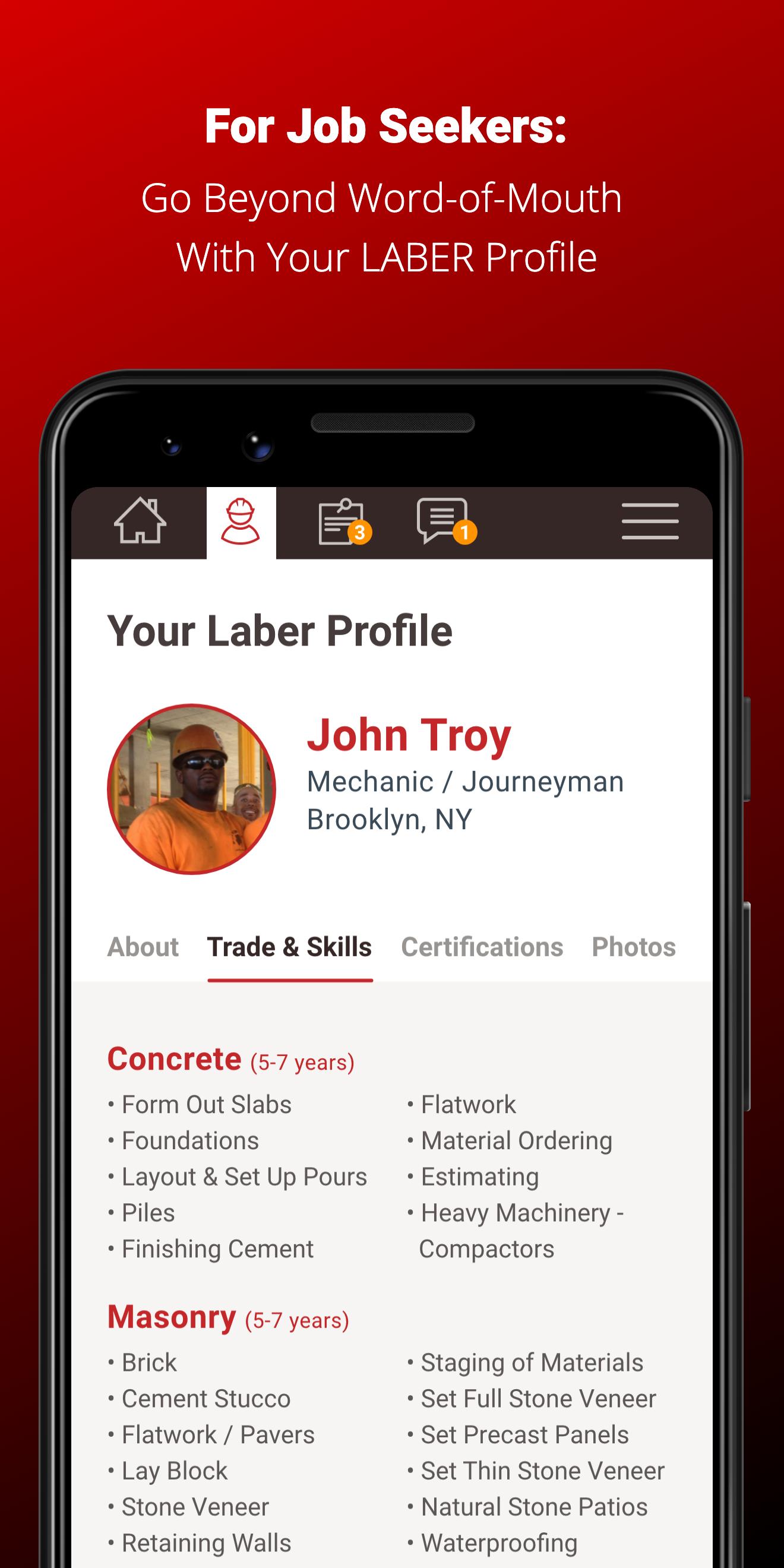 -Post a job opportunity -or- Search through your local LABER network of skilled workers.