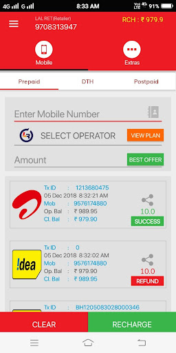 Cette application fournit un moyen efficace de faire facilement tous les types de recharges mobiles.Il fournit une recharge prépayée, la recharge postpayée également la recharge DTH et les paiements d'électricité.De plus, il fournit une installation de transfert d'argent.