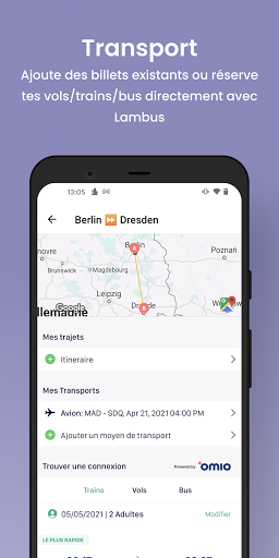 Avec notre fonction de transport, tu peux non seulement planifier tes itinéraires, mais aussi stocker ou réserver tes transports de manière pratique. Une fois réservés, les billets seront automatiquement ajoutés à tes documents de voyage !