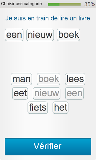 Apprenez le hollandais en reconnaissant des mots et des images, en trouvant le mot manquant, en complétant des phrases et en les construisant. Avec cette appli, vous apprendrez près d'un millier de mots hollandais ainsi que la façon dont il faut les utiliser.