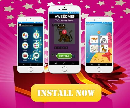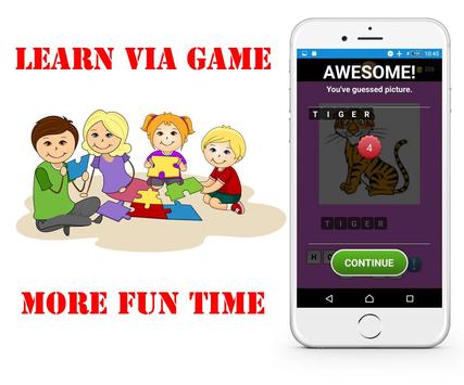 L'application Apprendre l'anglais pour les enfants développe une méthode PNL de base en utilisant une carte flash peut aider vos enfants à se souvenir du vocabulaire le plus rapidement possible. Avec cette application gratuite pour apprendre l'anglais pour les enfants, les enfants peuvent reconnaître l'alphabet anglais, les animaux, les fruits, la couleur, la nourriture, les nombres .... Enseigner l'anglais aux enfants est une langue importante pour le développement des enfants.