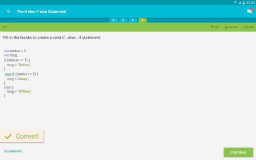 Amusez-vous et apprenez tous les principes fondamentaux de JavaScript avec Sololearn!