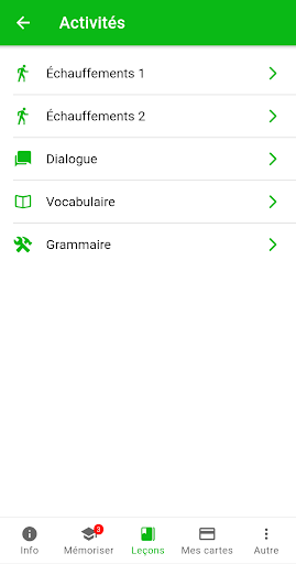 - Vocabulaire des mots nouveaux de chaque dialogue.