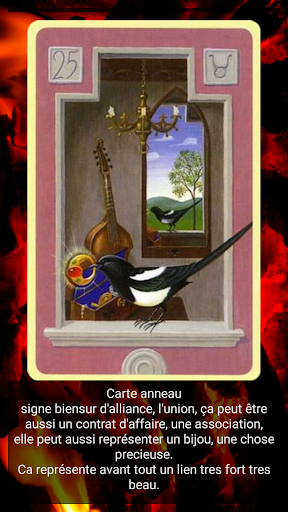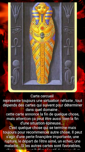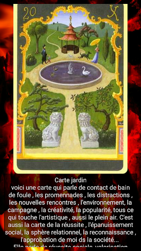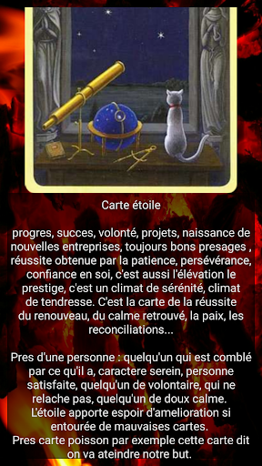 Plus de 10 variantes des prédictions, telles que: jour, semaine, mois, passé, présent, futur. De plus, toutes les cartes vous indiqueront où vous avez fait des erreurs, comment agir dans telle ou telle situation et vous conseilleront comment procéder.