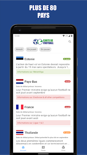 ✔️️ Le statut dans chaque pays (annulé, suspendu ou en cours)