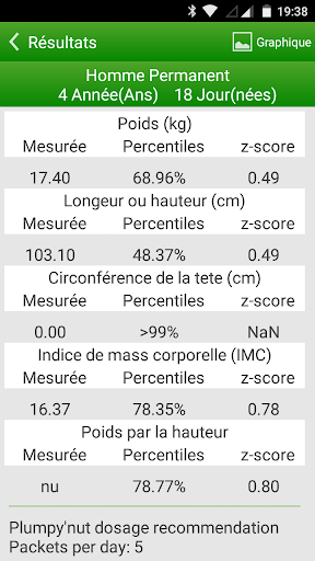 Logiciel de la malnutrition Maventy fournit des z-scores et les percentiles pour les mesures anthropométriques de base tels que poids, taille, circonférence de la tête et le poids en hauteur, sur la base de statistiques d'état civil d'un enfant. Les résultats sont étalonnés par rapport à l'Organisation mondiale de la Santé (OMS).