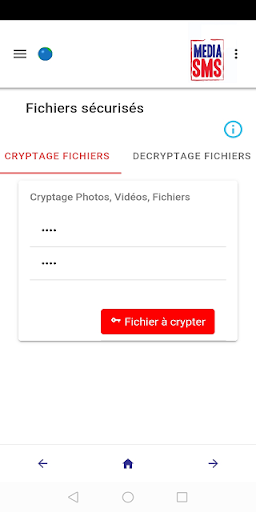 • Fichiers sécurisés : cette option vous permet de crypter et décrypter des Photos, Vidéos et Fichiers, qui ne peuvent pas être décrypté qu'avec un mot de passe.