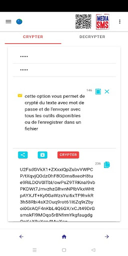 • Cryptage (Texte, Mail, Doc), cette option vous permet de crypter du texte avec mot de passe ou de décrypté du texte et de le partager avec tous les outils disponibles ou de l'enregistrer dans un fichier.