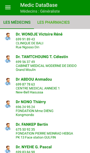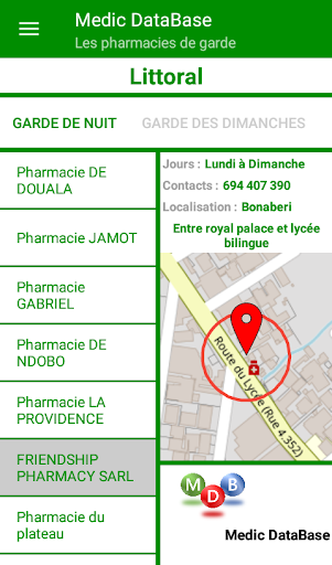 Une application qui Permet à l'utilisateur de se rapprocher de son pharmacien (localisation, contacts et assurances), d’avoir la liste de pharmacies ouvertes 24h/24, celles des garde de weekend et de nuit. Et enfin la carte de visite des médecins par spécialité.