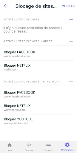 * Prioriser bande passante, fixer des limites d'utilisation ou de sites Web facilement bloquer