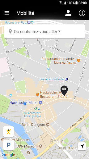 • L’application vous informe au besoin des possibilités de stationnement sur le lieu de votre destination