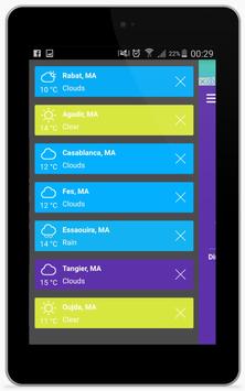 Meteo Maroc est une application mobile météo gratuite qui fournie les prévisions météorologiques (Temps, vent , humidité, marrées, le risque de pluie et l'état du ciel , activité soléaire, éphéméride, alertes) des villes du Maroc pour les cinq jours.