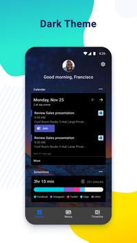 • Microsoft Launcher supports Dark theme for your viewing pleasure. Select dark theme for comfort of use at night or in low light environments. This feature is compatible with Android phone’s dark mode settings.