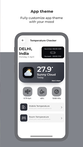 Le vérificateur de température vous aide à obtenir la température de la pièce, du téléphone et des prévisions de votre environnement.