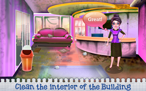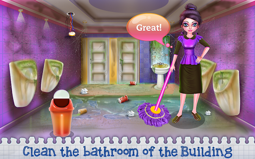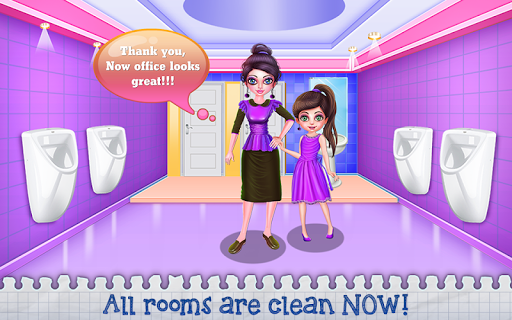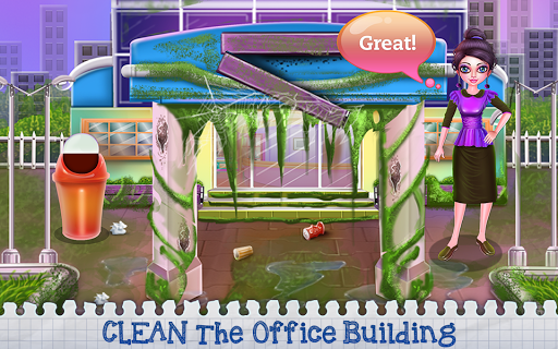 Mommy needs your help! Her office is a total mess and she has an important meeting to attend. Play this cleaning game and save her day with your excellent cleaning services. Begin with the outside part of the building that looks devastating. Have the trash gathered, erase the spider web and the dust, wash the walls, replace the lights and clean the windows. Next, you will have to handle the reception room and here you will have different things to do. Clean the floors, remove the stains, throw the garbage and then get rid of those stinky leftovers that are spread all over, then move to the walls that need a serious rubbing. Take care of each misplaced object to be arranged and if it's necessary, replace the broken things. The windows are smashed and such a mess, have them cleaned and have a new glass for the ones that couldn't be recovered. Right after you will be assigned to take care of the bathroom matter. Try some useful tricks and remove those stubborn stains that are on the toilet and in the bath tub. Make sure you let each room you clean spotless and good-smelling. There are broken things and clogged toilets. The sinks look bad too. Take care of these issues and use the appropriate tools for each type of cleaning activity. Now after all this hard work our mommy can enjoy her time at the office and she will be grateful to see what a good job you've done.