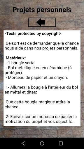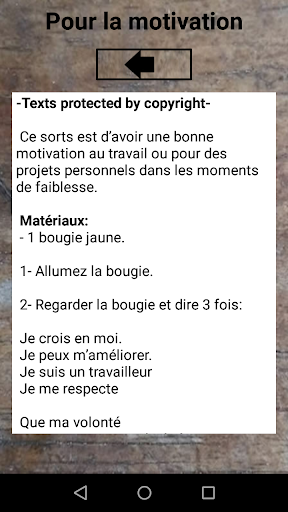 Rappelez-vous que cette application est une question de foi et nous ne sommes pas responsables d'une mauvaise utilisation ou d'une mauvaise interprétation des textes et des sorts.