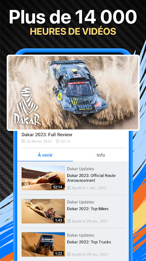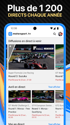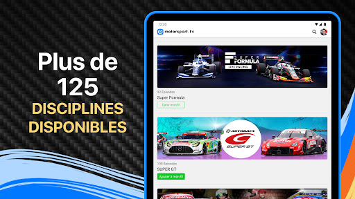 Motorsport.tv est votre destination ultime pour regarder des sports motorisés et des contenus vidéo automobiles sur vos appareils Android, le web et tout autre appareil de streaming. Notre approche "Anytime, anywhere, on all your devices" (n'importe quand, n'importe où, sur tous vos appareils) propose une expérience vidéo numérique de nouvelle génération et un lecteur avancé doté de fonctionnalités exclusives. L'expérience utilisateur est optimisée pour une navigation rapide et inclut une bibliothèque complète de vidéos à la demande sur les sports mécaniques. Parfait pour les fans de courses automobiles passionnés, les amateurs de voitures et les consommateurs automobiles en général, l'application propose également des actualités, des documentaires, du contenu de course, des archives vidéo et une couverture d'événements du monde entier.