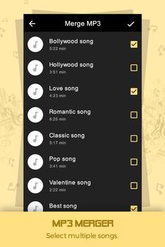 MP3 Merger and Mp3 cutter is used to join multiple mp3 audio files. Simply select desired songs you wanted to merge and make them in to one.