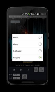Just select MP3 / music from your device. Select area to be cropped from the audio file and then save as Ringtone / Music / Alarm / Notification.