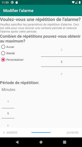 * Pour arrêter l'alarme, vous devez effectuer une action. Soit en secouant votre téléphone plusieurs fois, en résolvant des problèmes mathématiques, soit en prenant l'image d'un code-barres.