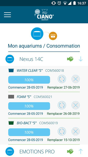 Ciano Aquarium® a le plaisir de vous offrir l’application My Ciano. Cette application a été créée pour faciliter et améliorer la pratique de l’aquariophilie, en gérant de façon simple le système de filtration de votre aquarium, permettant un accompagnement en temps réel de l’usure de vos consommables et en vous alertant pour le renouvellement de ceux-ci.