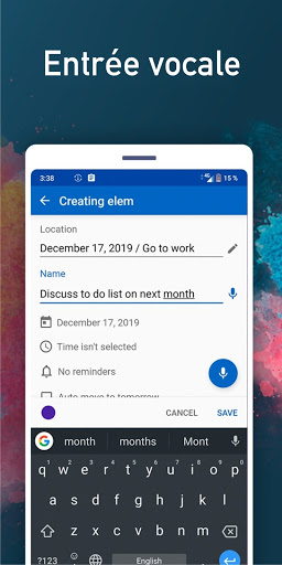 Arrêtez de perdre du temps sur des planificateurs quotidiens papier, commencez à utiliser l'électronique. L'application dispose d'un flux journalier et d'un calendrier pratiques. Vous pouvez: