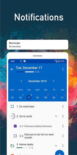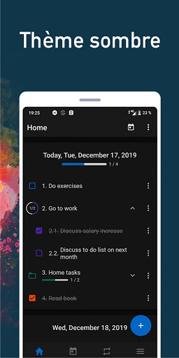 Souvent, une personne a un désordre dans sa tête et elle ne sait pas par où commencer la tâche. En divisant la tâche en sous-tâches, vous supprimez la confusion et pouvez facilement terminer la tâche. Dans l'application, la liste des sous-tâches peut être affichée sous la forme d'une arborescence, ou vous pouvez ouvrir la tâche et afficher ses sous-tâches.