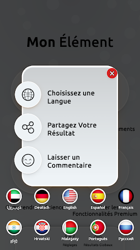 Mon élément est une union entre la théorie de la personnalité contemporaine et la connaissance archaïque des quatre éléments fondamentaux: l'eau, le vent, le feu et la terre. C'est un mariage entre scientifique et mystique. Si vous vous êtes déjà demandé "Quel élément suis-je?" ou "Quel est mon type de personnalité?", répondez au questionnaire de 16 questions pour obtenir une réponse définitive. Dans la section "Comprendre la science", vous pouvez comprendre pourquoi Mon élément ne ressemble à aucun autre test ou test de personnalité. Vous pourrez également voir les résultats globaux de tous les autres participants. L'application est également traduite dans 10 langues différentes.