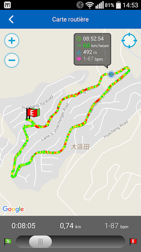o Affichage des données de vitesse et de fréquence cardiaque de chaque point enregistré sur la feuille d'itinéraire