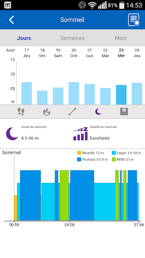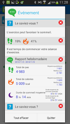 o Visualisez l'historique détaillé de vos activités (quotidien, hebdomadaire, mensuel)