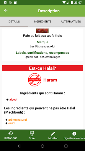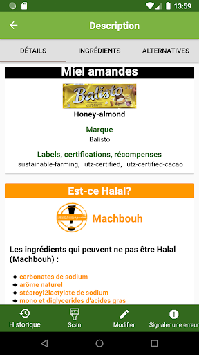 ✦ Pour chaque produit scanné, vous avez une liste de produits Halal alternatifs, ou similaires et où les trouver.