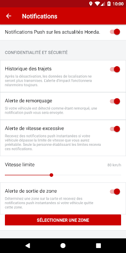- Alertes lorsque votre voiture dépasse une vitesse ou quitte une zone prédifinies même lorsque vous êtes au volant, mais aussi lorsque votre voiture est remorquée