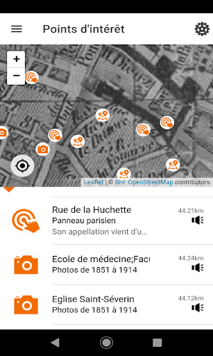 L'application affiche des informations historiques sur une carte. L'utilisateur peut écouter des informations concernant un point d'intérêt. Des photos d'époques sont disponibles. Cette application vous aide à découvrir une ville à différentes périodes.