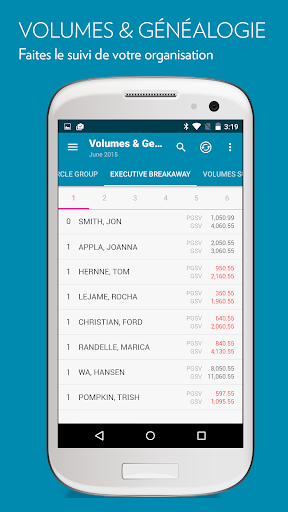 Consultez l’activité de votre réseau par le biais de la page « Volumes et information portant sur les membres de votre réseau ». Suivez les activités de votre groupe-cercle ou de vos chefs de groupe – Essaim, ou les activités liées à votre dernier relevé de commissions, ou suivez l’historique de vos commandes ou de votre rapport sur les chiffres de vente personnel (VP) et de groupe (VG). Vous avez besoin de communiquer ou de faire du réseautage avec un membre de votre réseau? Vous pouvez facilement retrouver ses coordonnées, l’appeler, lui envoyer un courriel ou visualiser son adresse sur une carte.